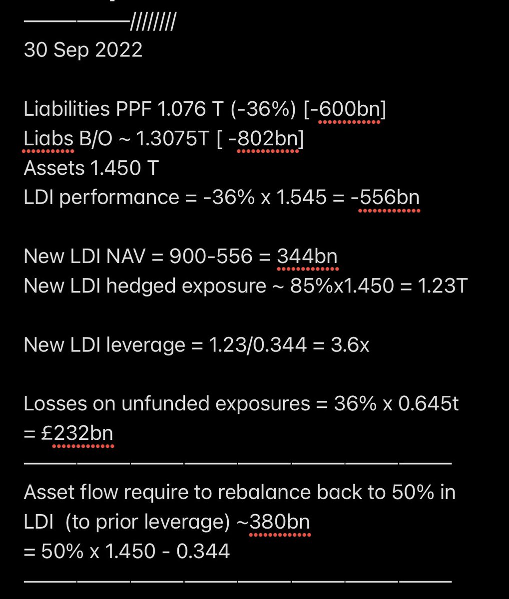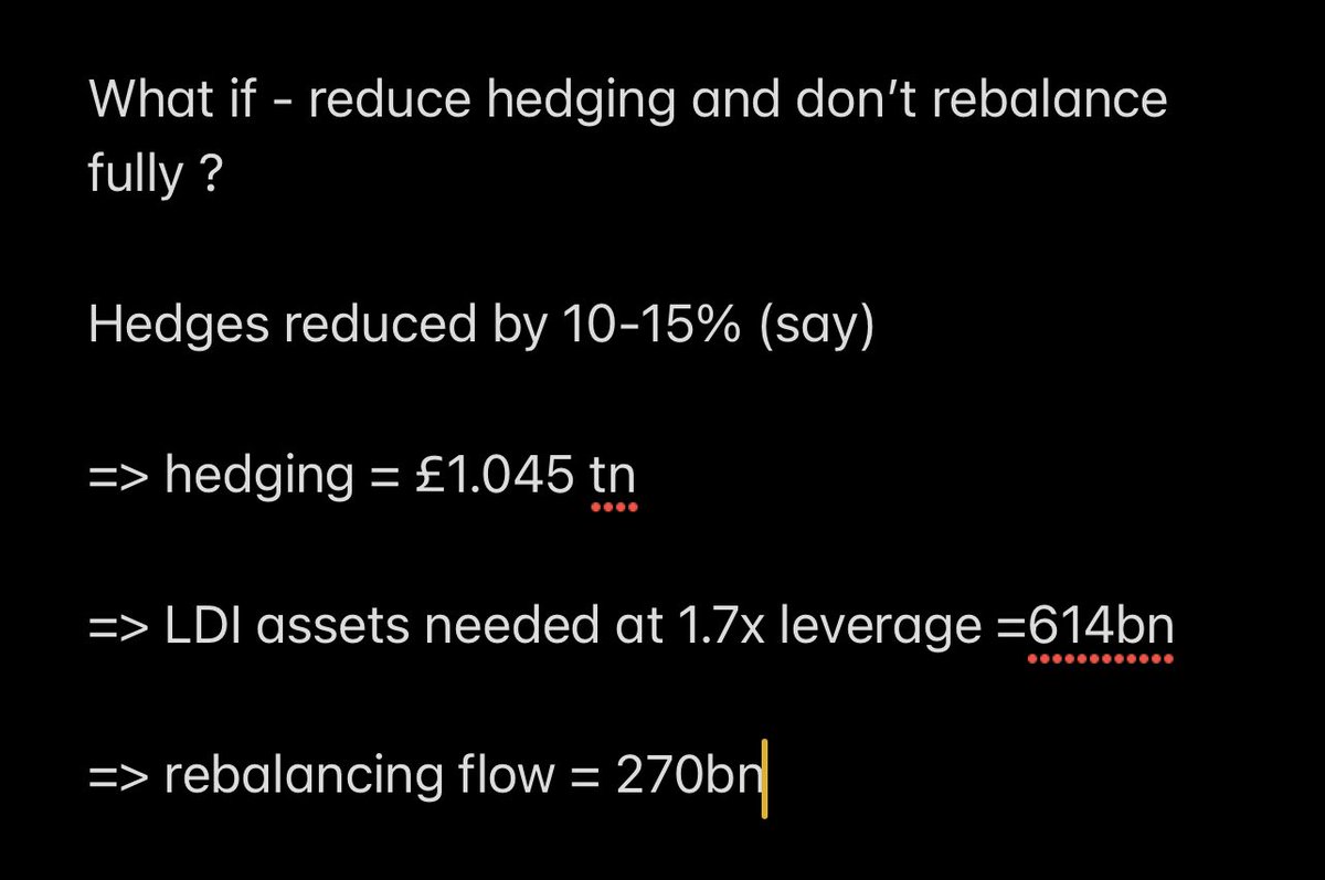 🔄£270-380BN asset flow needed to rebalance (workings below). The UK DB sector is overall in a good funded position but these are BIG numbers, even in the context of global markets and asset flows (a lot of managers will see outflows in the multiple tens of billions).